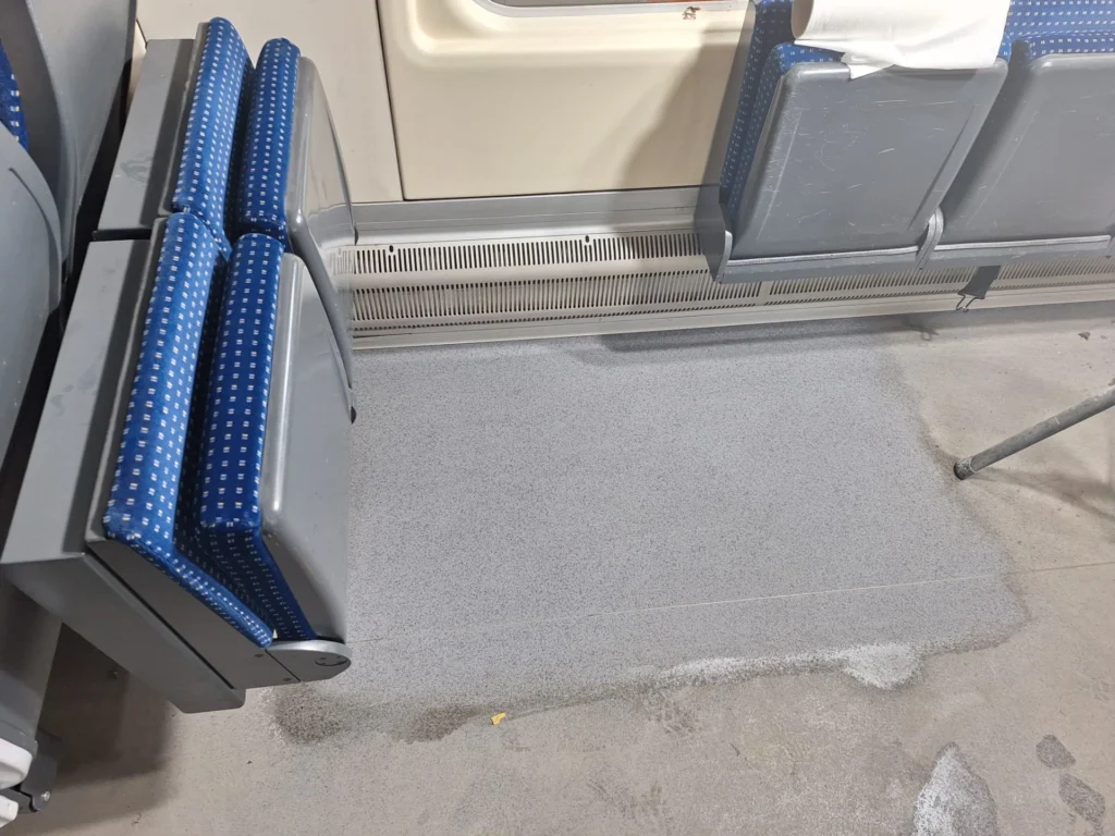 pojazdach szynowych min.: wagonach pasażerskich, tramwajach, metrze.